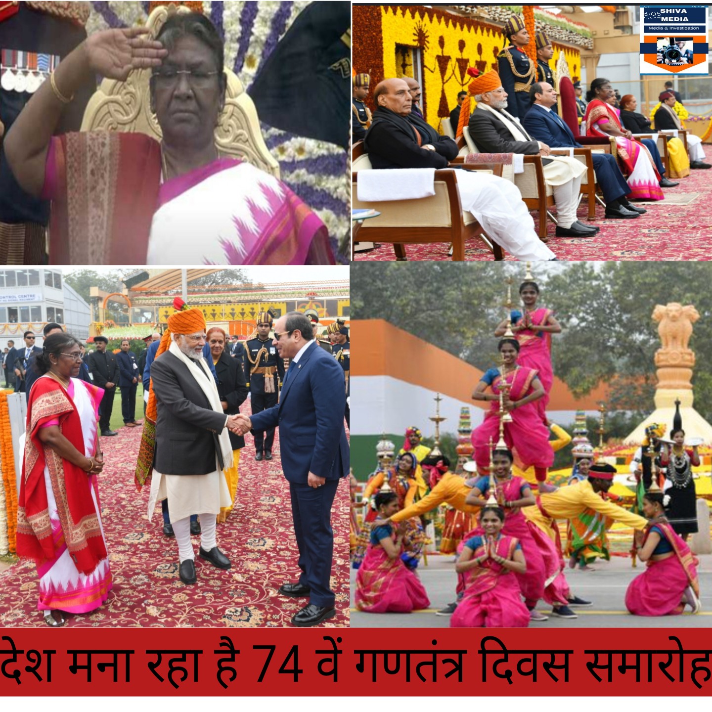देश आज 74वां गणतंत्र दिवस मना रहा है। देश की पहली आदिवासी महिला राष्ट्रपति द्रौपदी मुर्मू ने दिल्ली के कर्तव्यपथ पर झंडोत्तोलन के बाद परेड को सलामी दी। गणतंत्र दिवस समारोह में मिस्र के राष्ट्रपति अब्देल फतह अल-सीसी मुख्य अतिथि के रुप में शामिल हुए। राष्ट्रपति द्रौपदी मुर्मू और पीएम मोदी ने मिस्र के राष्ट्रपति का स्वागत किया। इसके बाद तिरंगा झंडा फहराया गया। 21 तोपों की सलामी के साथ देश का राष्ट्रगान गाया गया। कर्तव्य पथ पर परेड का भव्य आयोजन किया गया।