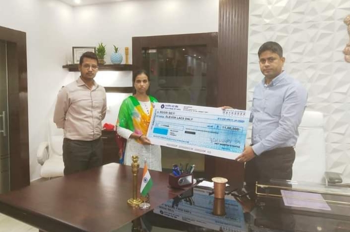 रोहतास (बिहार)। जिलाधिकारी धर्मेंद्र कुमार द्वारा शुक्रवार को अपने कार्यालय कक्ष में जिले के शहीद जवान के निकटतम आश्रितों को अनुग्रह राशि के रूप में 11-11 लाख रुपया का भुगतान चेक प्रदान किया। यह राशि सैनिक कल्याण निदेशालय, गृह विभाग (आरक्षी शाखा), बिहार सरकार से प्राप्त निर्देश के आलोक में दी गई है।