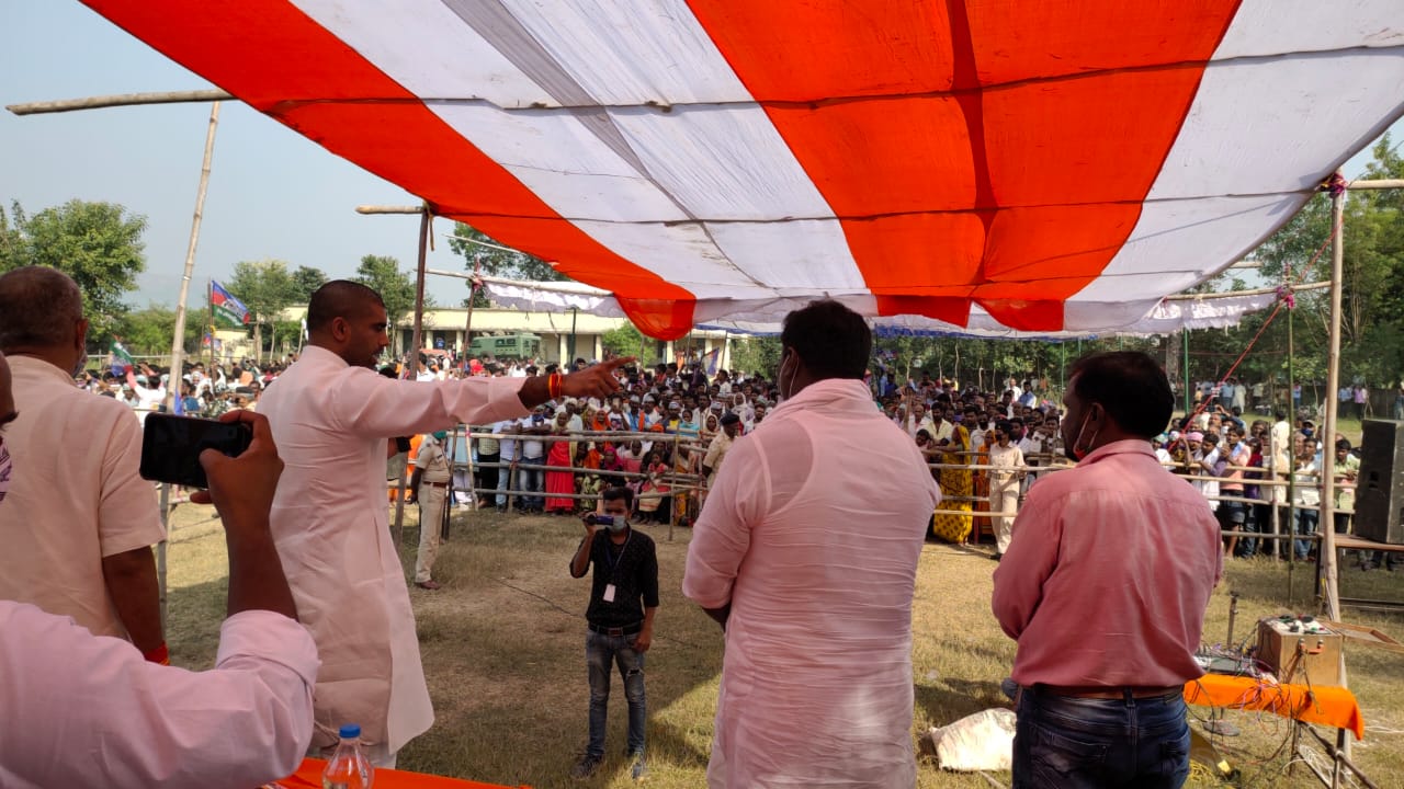 उन्होंने कहा कि हम वादा करते है कि युवाओ को रोजगार देंगे| नीतीश कुमार नलजल की बात करते है| साठ प्रतिशत भी गरीबो के घर नलजल नही पहुंचा| हम इस चुनाव में अकेले आए है| आप सभी का साथ चाहिए, अगर हमारी सरकार बनी तो पहला काम पंडुका पुल पर होगा और इसे पूरा कराएंगे | सत्ता में बैठे लोग सिर्फ अपना लाभ देख रहे है| गरीबो के प्रति समर्पित हम लोजपा परिवार शुरू से गरीबो का ख्याल रखा है, आगे भी रखेंगे| लोजपा के पूर्व सांसद सूरजभान ने भी जनसभा को सम्बोधित किया ।