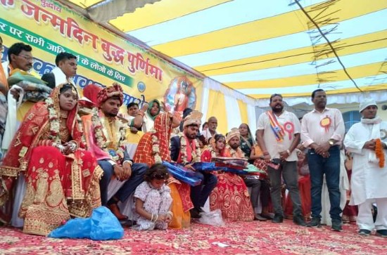 रोहतास (बिहार)। सासाराम स्थित कुशवाहा सभा भवन में गुरुवार को बुद्ध पूर्णिमा के अवसर पर निःशुल्क सामूहिक विवाह समारोह का आयोजन किया गया। शादी समारोह का शुभारंभ पंचशील झंडा का झंडोतोलन करके किया गया।
